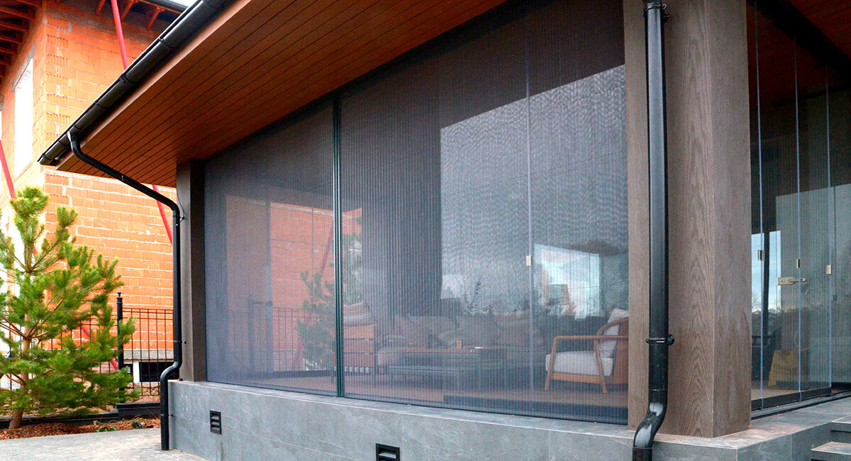 Современное остекление позволяет возвести стеклянную раздвижную стену вместе со встроенной выдвижной сеткой-плиссе на любом фундаменте.