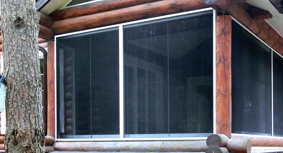 Мы предлагаем дублировать безрамное остекление выдвижными сетками-гармошками (или сетками-плиссе) от насекомых. Когда в них нет необходимости, то они сложены в боковом проеме внутри профиля и не видны.